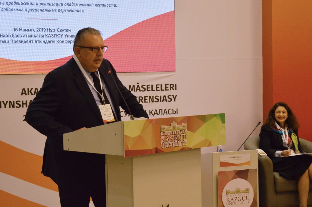 Академиялық адалдықты ілгерілету және іске асыру үшін үздік халықаралық шешімдерді талқылауды M.S. Narıkbaev atyndağy KAZGUU Unıversıteti-нің Экономика жоғары мектебі және Назарбаев Университетімен бірлесіп ұйымдастырылады. Биыл конференцияға Қазақстан, Германия, Австралия, Ұлыбритания университеттерінің өкілдері қатысуда.