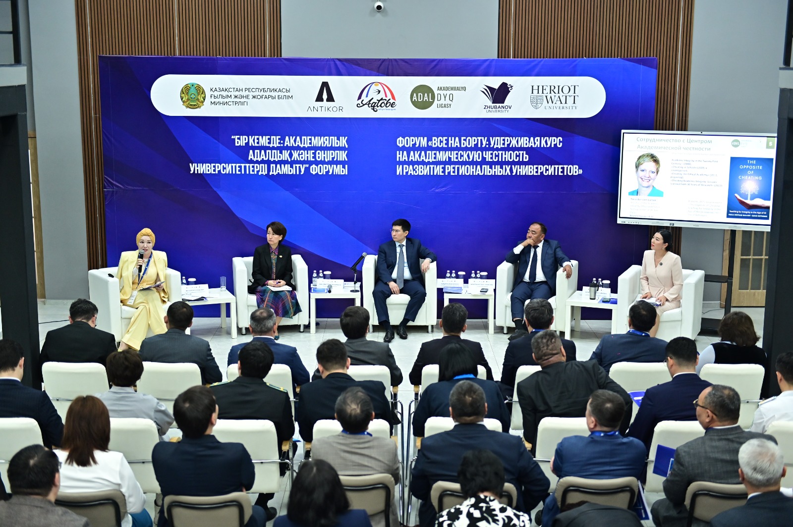 АКТОБЕ, Казахстан – 27 июня 2025 года — Лига Академической Честности (Лига) успешно провела Форум под названием «Все на борту: удерживая курс на академическую честность и развитие региональных университетов», который стал ярким событием в образовательной повестке страны. Мероприятие прошло на базе Актюбинского регионального университета им. К. Жубанова, председательствующего в Общем собрании Лиги в 2024–2025 академическом году. Форум собрал около 40 руководителей ведущих университетов Казахстана, а также представителей Агентства по противодействию коррупции, Министерства науки и высшего образования РК и Акимата Актюбинской области.